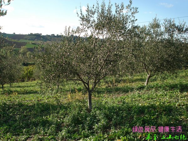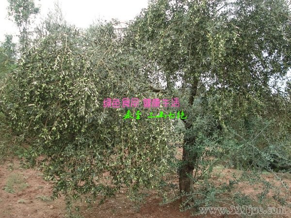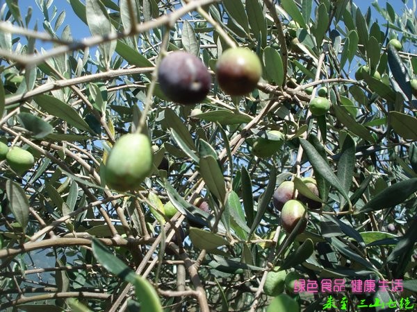 橄榄树,别名齐墩果 ,木犀科,木犀属亚热带常绿乔木,耐旱,耐寒,是生长能力很强的长寿树种。全世界橄榄树的栽培品种有500余种。橄榄枝叶茂密,可作为庭荫树、行道树或观果树,树皮粗糙,老时深纵裂,小枝四棱形。叶近革质,对生,窄卵状披针形或披针形形,表面暗绿色,叶背密生灰白色鳞片,中脉在两面隆起,侧脉不甚明显。圆锥花序,花白色,芳香。核果近球形,黑色,光亮。花期4-5月。果熟期10-12月。